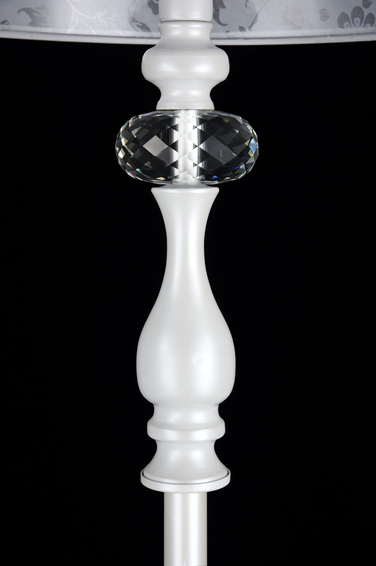 Все изделия серии, кроме бра, в основании декорированы украшением в виде большого круглого граненого кристалла. Отделка арматуры - жемчужного белого цвета, абажуры сделаны из сатина с цветочным рисунком.