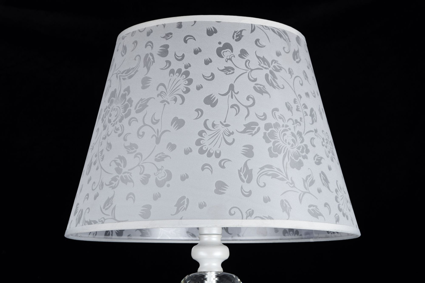 Отделка арматуры - жемчужного белого цвета, абажуры сделаны из сатина с цветочным рисунком.