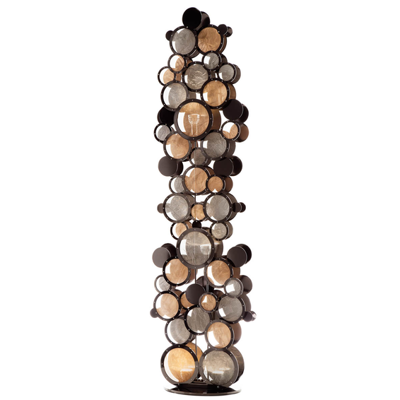 Арматура светильника сделана из металла. Металлическая рама доступна в: алюминий,светлое золото,черный никель,белый бархат,ржавчина. Декоративные круги со стеклом прозрачного и медного цветов. Доступен с LED освещением.