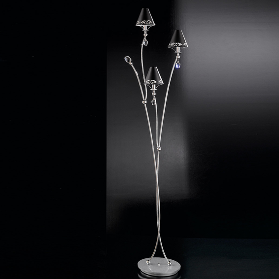 Металлический каркас доступен в разных цветах:24-каратное золото с матовыми деталями,хром с матовыми хромированными деталями. Плафон из стекла,с ручной отделкой черного цвета и белого.Подвеска из прозрачного хрусталя.