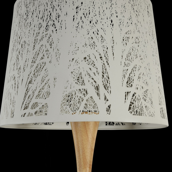 Круглый каркас из металла дополнен деревянным элементом. Использование трафаретного узора.