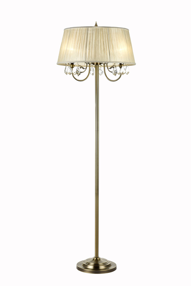 Арматура из металла. Абажуры из плиссированной органзы с тесьмой. Подвески из *хрусталя.