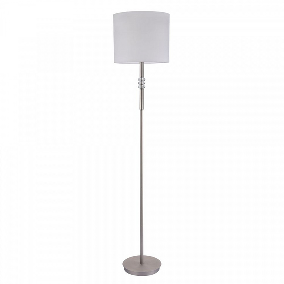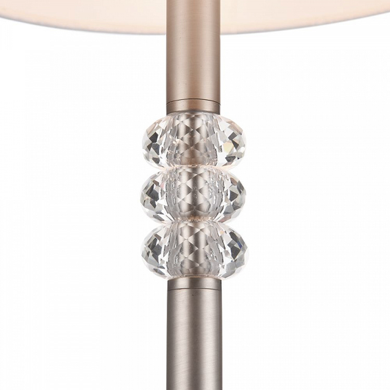 Арматура из металла. Рожки дополнены стеклянными элементами. Абажур из ПВХ покрыт тканью.
