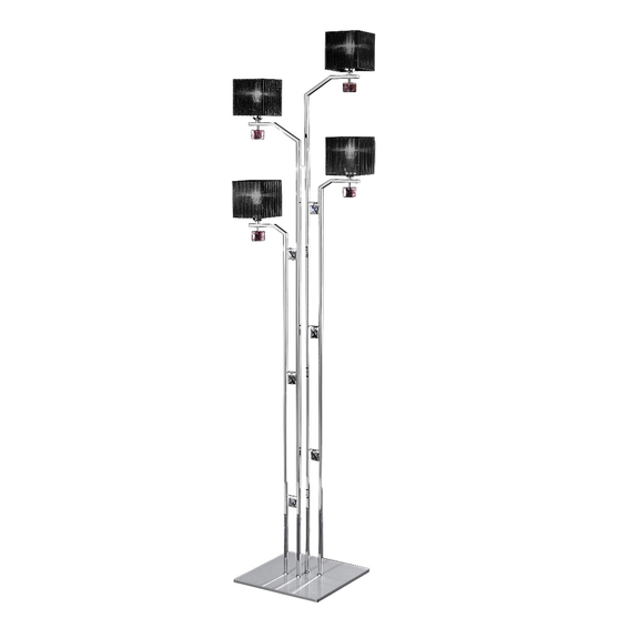 "Хромированная металлическая рама.Подвески из прозрачного хрусталя.Абажуры из органзы, доступны в черном, ледяном и медно-коричневом цветах.Кубики молотого хрусталя доступны в прозрачных, аметистовых и янтарных тонах. "