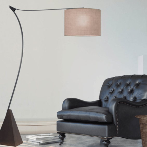 Каркас изготовлен из металла, абажур из ткани джут светлого и темного оттенка.