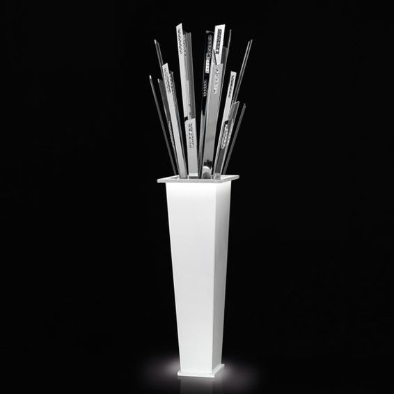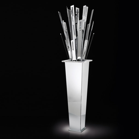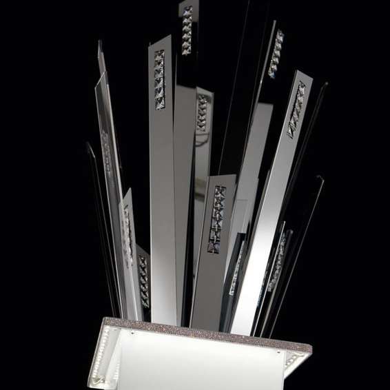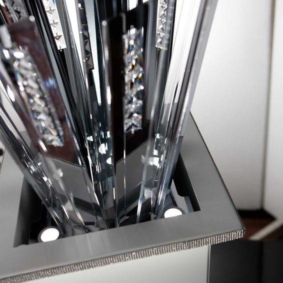 Каркас изготовлен из металла, декоративные элементы - кристаллы Сваровски. Доступен в отделке хром или белый глянцевый.