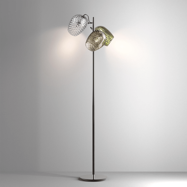 Каркас из металла хромированного или легкого золота.Светильник декорирован муранским стеклом разного цвета:прозрачный черный декорированный,прозрачный белый декорированный,прозрачный золтой декорированный.