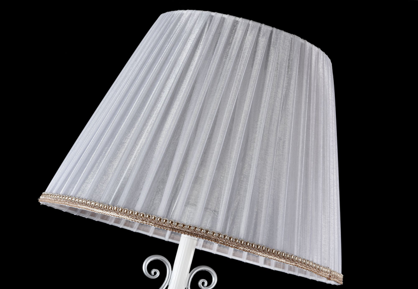 Арматура сделана из металла жемчужно-белого цвета, а абажуры - из белой органзы.