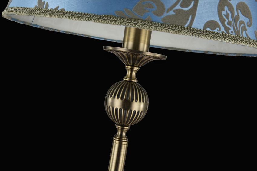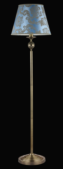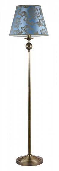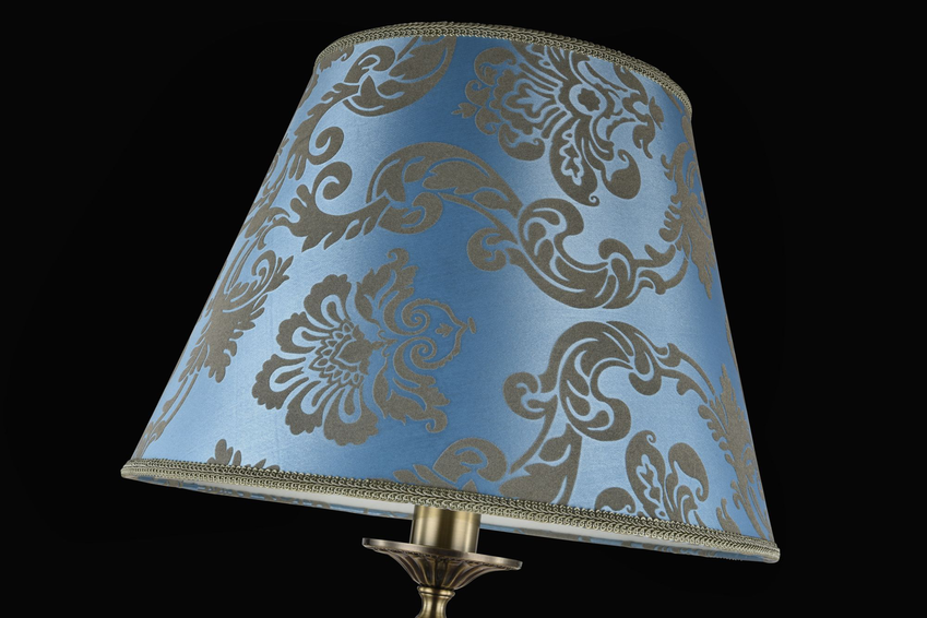 Арматура из металла. Абажур из плотного атласа голубого цвета с принтом. Подвески из *хрусталя.