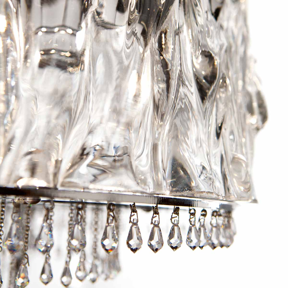 Каркас изготовлен из металла, плафоны из муранского стекла, с декоративными элементами Swarowski Crystals. Доступен в хромированном и золотистом цветах и в цвете чеерный баклажан.