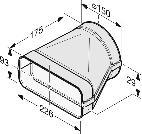 Переходник с прямоугольного на круглый воздуховод Для KMDA7774FR и CSDA7000 Для вентиляции в режиме отвода воздуха и рециркуляции Изготовлен из белого огнестойкого пластика Страна производства: Германия