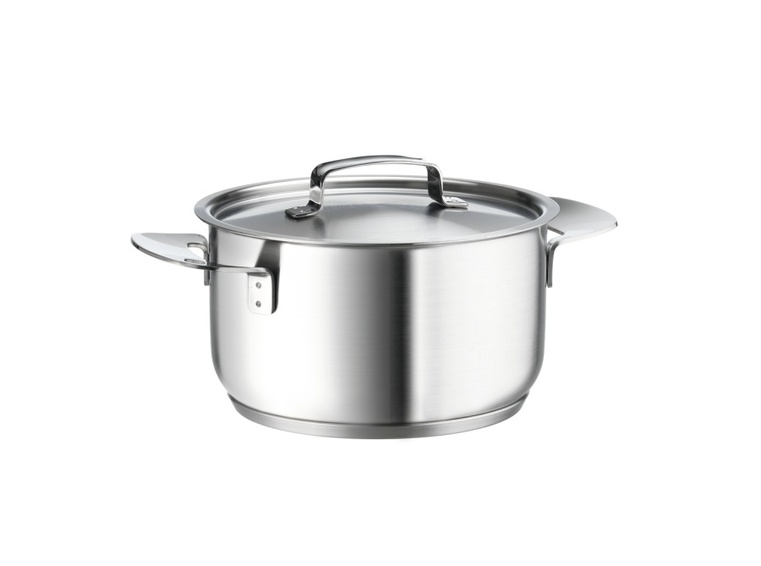 Кастрюля All Steel от Fiskars Кастрюля из нержавеющей стали с матовым покрытием Пятислойное дно кастрюли обеспечивает минимальный уровень шума Идеально сочетается с индукционными панелями конфорок Miele Безопасные и эргономичные ручки из нержавеющей стали Градуировка внутри кастрюли упрощает процесс приготовления Диаметр 18 сантиметров, объём 2,5 литра