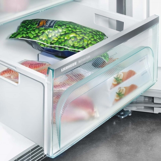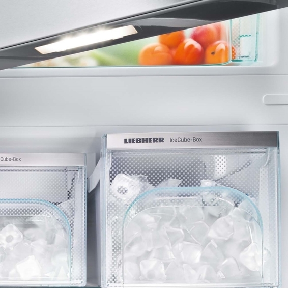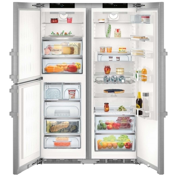 Холодильник Side-by-Side Liebherr SBSes 8483-20 001 – удачный выбор для большой семьи. Общий объём этой модели составляет 688 л, из них 126 л приходятся на морозильную камеру – хватит места и для закупок на неделю, и для масштабных сезонных заготовок