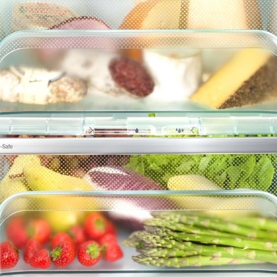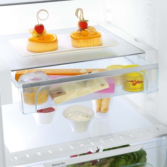 ПРАКТИЧНОСТЬ И КОМФОРТ Несмотря на внушительные габариты, это экономичное и тихое устройство. Благодаря эффективному инверторному компрессору тратится всего 251 кВтч в год, что соответствует классу энергопотребления А++. Уровень шума не превысит 37 дБ. Это сравнимо с тихим разговором. СОВРЕМЕННОЕ ОБОРУДОВАНИЕ Внутреннее оснащение включает в себя зону свежести BioFresh, состоящую из двух контейнеров: HydroSafe и DrySafe. Первый предназначен для фруктов и овощей, второй – для охлаждённого мяса, рыбы, разнообразных полуфабрикатов. Боксы «ходят» по телескопическим направляющим. Есть и лёдогенератор, стационарно подключаемый к водопроводу. ВСЁ ПРОДУМАНО Холодильник не доставит никаких хлопот в уходе. Он размораживается автоматически, за что отвечает система No Frost. Иней и наледь не образуются. К вашим услугам режимы «Суперохлаждение» и «Суперзамораживание», которые помогут при крупном «набеге» на супермаркет. А «Отпуск» позволит не отключать прибор на время вашего отсутствия. Страна Германия Гарантия 2 года Срок службы 10 лет Ключевые преимущества Обратите внимание зона свежести BioFresh Удачное решение ледогенератор Важная особенность двери с доводчиками Пользователи оценят ручки из алюминия с толкателями Хорошо придумано светодиодное освещение Объем Общий объем 688 л Объем холодильной камеры 562 л Объем зоны свежести 172 л Объем морозильной камеры 126 л Расположение мороз.камеры боковое Корпус Количество камер 3 Тип компрессора инверторный Количество компрессоров 2 Защитное покрытие от отпечатков пальцев Да Открытие дверцы налево/направо Уровень шума Максимальный уровень шума 37 дБ Система размораживания Разм. холод. камеры автомат.(капельное) Разм. мороз. камеры автомат.(No Frost) Система No Frost в морозильном отделении Энергоэффективность Класс энергоэффективности A++ Энергопотребление в год 251 кВтч Климатический класс Климатический класс SN-T Производительность Мощность замораживания 20 кг/сутки Управление Тип управления электронный Освещение Тип освещения светодиодное Функции Лёдогенератор Да Очистка воздуха Да Подключение Подключение к водопроводу Да Режимы работы Режим суперзамораживания Да Режим суперохлаждения Да Режим "приготовление льда" автоматический Режим "отпуск" Да Режим "шаббат" Да Режим "нулевая температура" Да Индикация Индикация режима работы Да Инд. темп. в холод. к-ре Да Инд. темп. в мороз. к-ре Да Инд. темп. в зоне сохр.свежести Да Безопасность Сигнал о повышении температуры звуковой/ световой Сигнал открытой двери звуковой/ световой Свет.сиг. повышения темп. Да Хранение при откл. питания 24 ч Звук.сиг. повышения темп. Да Свет.сиг. двери холод.к-ры Да Звук.сиг. двери холод.к-ры Да Свет.сиг. двери мороз.к-ры Да Звук.сиг. двери мороз.к-ры Да Полки холодильной камеры Полок в холодильной камере 7 Полок на двери хол. камеры 5 Складных полок 1 Материал Материал полок стекло закаленное Зона сохранения свежести Зона сохранения свежести влажная/сухая Ящиков в зоне сохр. свежести 4 Регул. влажности в зоне сохр. свежести Да Телеск.направляющ.ящиков зоны свежести Да Отделения в морозильной камере Отделений в мороз. камере 1 Ящиков в мороз. камере 5 Оснащение Вентилятор для распр. темп. Да Дверь Материал двери. нерж сталь Количество дверей 3 Механизм мягкого закр двери Да Ручки легкого открывания Да Авт. доводчик двери Да Авт. доводчик дверцы мороз
