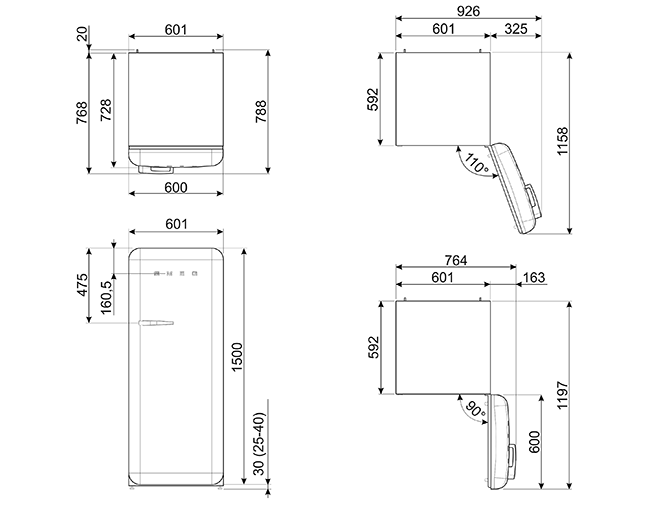 Отдельностоящий однодверный холодильник, стиль 50-х годов, 60 см. Синий. Класс энергопотребления А+++