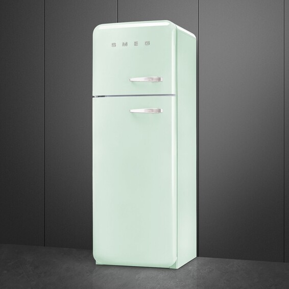Отдельностоящий двухдверный холодильник, стиль 50-х годов, 60 см, пастельный зеленый Класс энергопотребления А+++