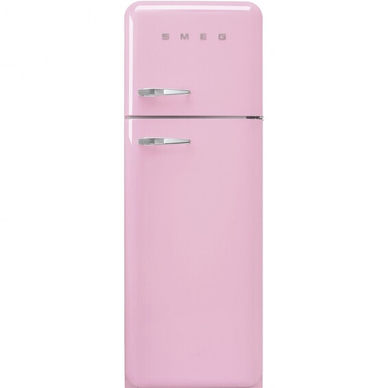 Отдельностоящий двухдверный холодильник, стиль 50-х годов, 60 см, розовый. Класс энергопотребления А+++