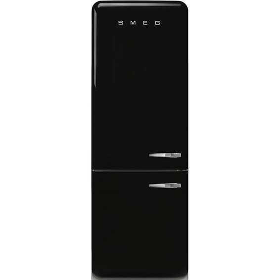 Отдельностоящий двухдверный холодильник, стиль 50-х годов, 70 см, черный, No-frost, петли слева. Класс энергопотребления E