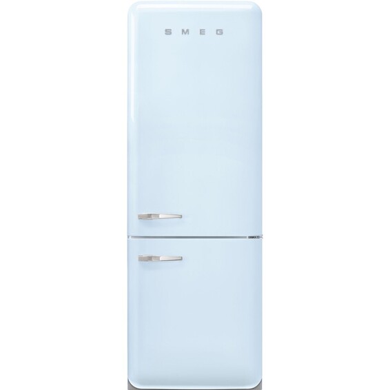 Отдельностоящий двухдверный холодильник, стиль 50-х годов, 70 см, пастельный голубой, No-frost, петли справа. Класс энергопотребления E