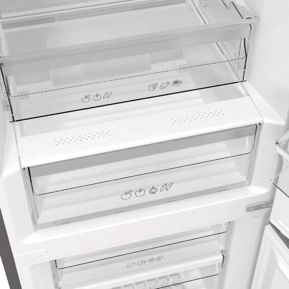 Тип охлаждения - No-Frost Разморозка - Автоматическая Тип подсветки холодильного отделения - LED Внутренняя подсветка холодильного отделения - Да Холодильное отделение: Количество ящиков для овощей и фруктов - 1 Количество регулируемых полок - 3 Количество полок для бутылок - 1 Количество регулируемых полок на дверце - 3 Аксессуары - Контейнер для сыра, Подставка для яиц Морозильное отделение: Количество ящиков - 3 Аксессуары - 1 форма для льда Тип контроля температуры - Электронный Функции на дисплее - Быстрая заморозка