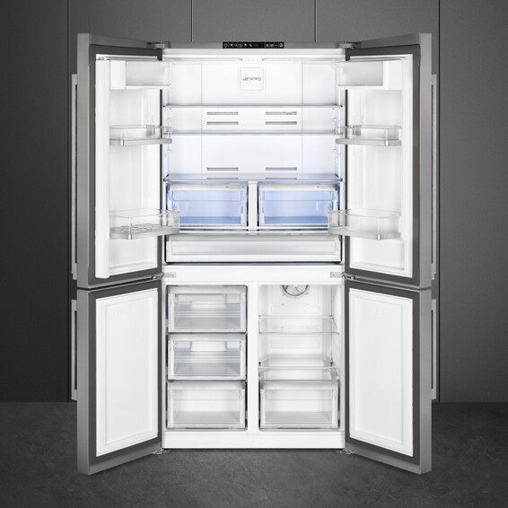 Отдельностоящий 4-х дверный холодильник, No-Frost, нержавеющая сталь. Класс энергоэффективности E