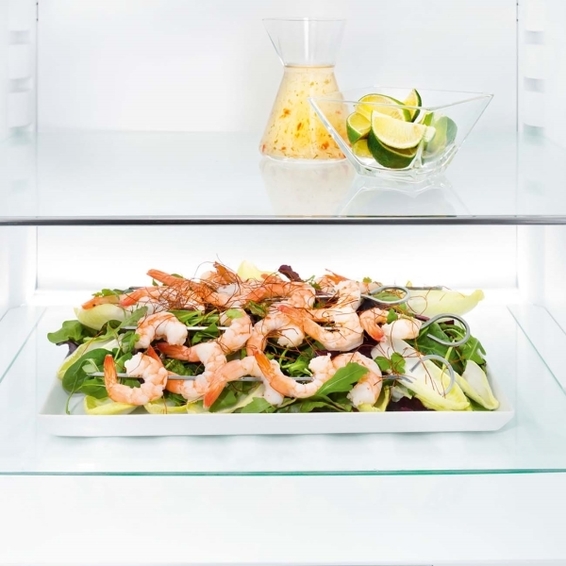 УДОБСТВО И ЭФФЕКТИВНОСТЬ На верхней дверце расположена интуитивно понятная панель управления с сенсорным дисплеем, позволяющая изменять настройки одним прикосновением. Два контура охлаждения DuoCooling обеспечивают наиболее точную регулировку температуры в обеих камерах. КОМФОРТ Наледь в отделениях не образуется, поскольку в верхнем – капельная система размораживания, а в нижнем – No Frost. Избавьте себя от лишних хлопот! ВСЁ ПРОДУМАНО Внутреннее пространство организовано так, что там поместится максимальное количество продуктов. Полки, одна из которых складывается, а три регулируются по высоте, изготовлены из высококачественного закалённого стекла. BIOFRESH Храните фрукты, овощи и зелень во влажной зоне свежести, сухая же оптимально подходит для рыбы, оттаявшего мяса и сыров. Оба контейнера дополнены надёжными телескопическими направляющими. ПОЛЕЗНЫЕ ФУНКЦИИ Закупились в супермаркете? Равномерно распределите еду и активируйте режимы SuperCool и SuperFrost – так продукты охладятся и заморозятся предельно быстро. ЭКОНОМИЧНОСТЬ И ТИШИНА Liebherr CBNbs 4878-20 001 с инверторным компрессором рационально потребляет электроэнергию, поэтому совсем не значительно увеличит ваши коммунальные счета. А шум, создаваемый прибором, сопоставим с приглушённой беседой между людьми, то есть не будет доставлять дискомфорта. ВНИМАНИЕ НА ДЕТАЛИ Ножки регулируются, поэтому ровная установка больше не будет такой уж сложной задачей. Чтобы открыть дверь, снабжённую толкателем, не нужно чрезмерных усилий, обратное же действие облегчает автодоводчик. Уплотнитель можно помыть или вовсе заменить, поскольку он снимается. Яркие потолочные светодиоды позволяют видеть содержимое всех полок и контейнеров. БЕЗОПАСНОСТЬ Долго нет электричества? Еда точно не испортится, ведь низкая температура будет поддерживаться автоматически ещё на протяжении целых суток. А специальный звуковой сигнал не даст оставить дверцы открытыми. Гарантия 2 года Страна Германия Срок службы 10 лет Ключевые преимущества Обратите внимание зона свежести BioFresh Удачное решение 2 контура охлаждения Важная особенность доводчик двери Пользователи оценят высокая энергоэффективность Хорошо придумано фильтр воздуха FreshAir Объем Объем холодильной камеры 243 л Объем зоны свежести 97 л Объем морозильной камеры 101 л Расположение мороз.камеры нижнее Корпус Количество камер 3 Тип компрессора инверторный Количество компрессоров 1 Установка вплотную к стене Да Защитное покрытие от отпечатков пальцев Да Открытие дверцы направо Уровень шума Максимальный уровень шума 36 дБ Система размораживания Разм. холод. камеры автомат.(капельное) Разм. мороз. камеры автомат.(No Frost) Система No Frost в морозильном отделении Энергоэффективность Класс энергоэффективности A++ Энергопотребление в год 186 кВтч Климатический класс Климатический класс SN-T Производительность Мощность замораживания 16 кг/сутки Управление Тип управления электронный Освещение Тип освещения светодиодное Оснащение Вентилятор для распр. темп. Да Режимы работы Режим суперзамораживания Да Режим суперохлаждения Да Режим "отпуск" Да Экран Тип дисплея цифровой Индикация Индикация режима работы Да Инд. темп. в холод. к-ре Да Инд. темп. в мороз. к-ре Да Инд. темп. в зоне сохр.свежести Да Безопасность Сигнал о повышении температуры звуковой/ световой Сигнал открытой двери з