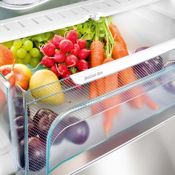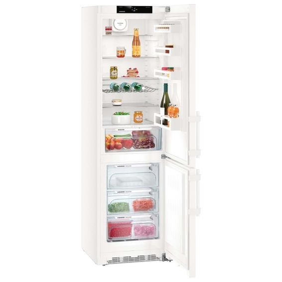 ОРГАНИЗАЦИЯ ПРОСТРАНСТВА В три ящика морозилки войдёт 101 литр съестных припасов. Объём же главного отделения составляет 260 литров. Одна из пяти прочных стеклянных полок складывается, а остальные регулируются по высоте, так что место найдётся для всех купленных в магазине продуктов. БЕЗ ЛИШНИХ ХЛОПОТ Благодаря капельной системе и технологии NoFrost ни в верхней, ни в нижней камере не образуется ледяная корка. Это избавит вас от необходимости её ручного удаления и высвободит время для более приятных дел. BIOCOOL Контейнер зоны свежести идеален для хранения фруктов, овощей и зелени. Его секрет состоит в возможности регулировки уровня влажности. Для его изменения достаточно передвинуть специальную заслонку на ящике. ТОНКОСТИ УПРАВЛЕНИЯ Выставляйте точные настройки в обоих отделениях с помощью удобного и интуитивно понятного сенсорного меню. Это возможно благодаря двухконтурной системе распределения низкой температуры DuoCooling. ВЫСОКАЯ СКОРОСТЬ За счёт наличия режимов SuperFrost и SuperCool еда в Liebherr CN 4835-20 001 быстро охлаждается и замораживается. Это позволяет не только сохранить полезные свойства пищи, но ещё и значительно снизить энергопотребление. Гарантия 2 года Страна Германия Срок службы 10 лет Ключевые преимущества Обратите внимание зона свежести BioCool Удачное решение ручки с толкателем Важная особенность режим суперзаморозки Пользователи оценят угольный фильтр FreshAir Хорошо придумано система NoFrost Объем Объем холодильной камеры 260 л Объем морозильной камеры 101 л Расположение мороз.камеры нижнее Корпус Количество камер 2 Тип компрессора инверторный Количество компрессоров 1 Установка вплотную к стене Да Открытие дверцы направо Уровень шума Максимальный уровень шума 38 дБ Система размораживания Разм. холод. камеры автомат.(капельное) Разм. мороз. камеры автомат.(No Frost) Система No Frost в морозильном отделении Энергоэффективность Класс энергоэффективности A++ Энергопотребление в год 174 кВтч Климатический класс Климатический класс SN-T Производительность Мощность замораживания 16 кг/сутки Управление Тип управления электронный Освещение Тип освещения светодиодное Оснащение Вентилятор для распр. темп. Да Режимы работы Режим суперзамораживания Да Режим суперохлаждения Да Режим "отпуск" Да Морозильная камера Выдвижная мороз. камера Да Экран Тип дисплея монохромный Индикация Индикация режима работы Да Инд. темп. в холод. к-ре Да Инд. темп. в мороз. к-ре Да Безопасность Сигнал о повышении температуры звуковой/ световой Сигнал открытой двери звуковой/ световой Звук.сиг. повышения темп. Да Хранение при откл. питания 24 ч Звук.сиг. двери холод.к-ры Да Звук.сиг. двери мороз.к-ры Да Полки холодильной камеры Полок в холодильной камере 5 Полок на двери хол. камеры 4 Складных полок 1 Полок, регулируемых по высоте 4 Материал Материал полок стекло закаленное Зона сохранения свежести Зона сохранения свежести влажная/сухая Отделений в зоне сохр. свежести 1 Ящиков в зоне сохр. свежести 1 Регул. влажности в зоне сохр. свежести Да Отделения в морозильной камере Ящиков в мороз. камере 3 Дверь Материал двери. эмалир. металл Количество дверей 2 Перенавешиваемые двери Да Ручки легкого открывания Да Комплектация Подставка для яиц Да Ванночки для льда 1 шт Цвет Цвет белый Вес Вес 80.7 кг Габаритные размеры Габаритные размеры (В*Ш*Г) 201*60*66,5 см