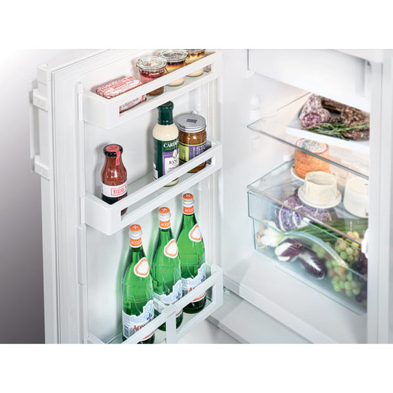 Холодильник однодверный Liebherr T 1414-21 имеет малые габариты. Он может устанавливаться в небольших квартирах или офисных помещениях, а также использоваться в качестве мини-бара в гостиничных номерах. БОЛЬШАЯ ВМЕСТИМОСТЬ Несмотря на компактные размеры, устройство может использоваться для хранения большого количества продуктов благодаря рациональному использованию внутреннего пространства. УДОБСТВО ИСПОЛЬЗОВАНИЯ Капельная система значительно облегчает размораживание холодильной камеры, а также предотвращает попадание талой воды на пол. ТИШИНА И ЭКОНОМИЧНОСТЬ Холодильник оснащается тихим компрессором, отличающимся малым уровнем энергопотребления. Для работы ему необходимо всего 177 кВт·ч в год, что соответствует классу экономичности А+. БЕЗОПАСНОСТЬ ПРОДУКТОВ Благодаря применению качественных теплоизолирующих материалов устройство способно поддерживать свежесть продуктов в течение 10 часов после отключения электроэнергии. ПОВЫШЕННАЯ НАДЁЖНОСТЬ Функция подогрева контура двери предотвращает накопление на ней конденсата, способствующего распространению коррозии.