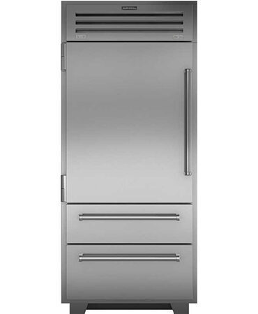 Рожденный из 100% нержавеющей стали холодильник Sub-Zero PRO 36 – не что иное, как произведение искусства в области хранения продуктов, яркий пример передового дизайна и воплощение философии Sub-Zero: “свежесть превыше всего”. Представьте скульптуру весом 300 кг, полностью предназначенную для хранения продуктов. Снаружи – строгий геометрический дизайн и брутальный металл, внутри – секретное профессиональное оружие. Морозильная камера – внизу. Холодильная – вверху. Высокая производительность и безукоризненная функциональность. Холодильник выполнен из нержавеющей стали как снаружи, так и внутри.