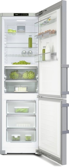 Отдельно стоящая холодильно-морозильная комбинация Цвет фронтальной панели: нержавеющая сталь / CleanSteel Дверной упор правый Освещение холодильного отделения Объединение в сеть с Miele@home Технология сохранения продуктов PerfectFresh Pro Покрытие ComfortClean Система динамического охлаждения DynaCool