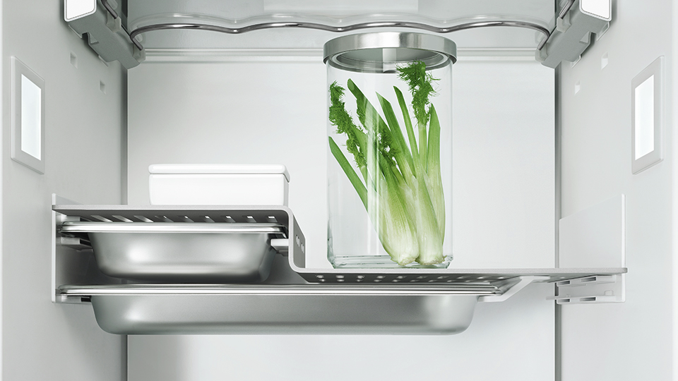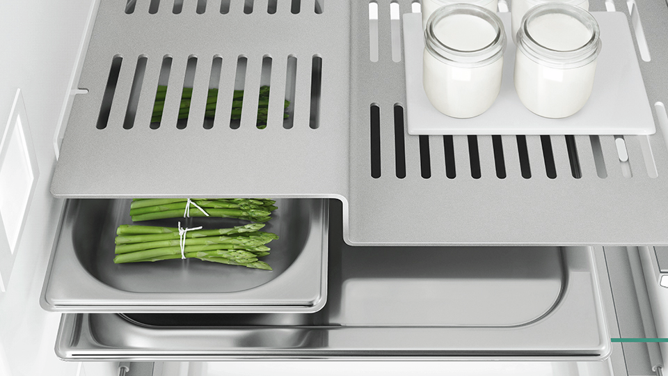 Прибор с великолепной обзорностью благодаря специальной системе освещения и использованию стеклянных и прозрачных материалов. Полки на телескопических полозьях • Максимальное использование внутреннего пространства при помощи специального - «ступенчатого» расположения полок, полки позволяют размещать различные боксы используя всю глубину прибора – Легкий доступ к продуктам: полностью выдвижные полки и ящики • Великолепная обзорность благодаря специальной системе освещения и использованию стеклянных и прозрачных материалов • Эффективная подготовка, приготовление и хранение с использованием приборов от Gaggenau: емкости для приготовления Gastronorm. • Увеличенное внутреннее пространство с полезным объёмом в 265л, благодаря специальному расположению компрессора • Cистема плавного закрывания двери прибора