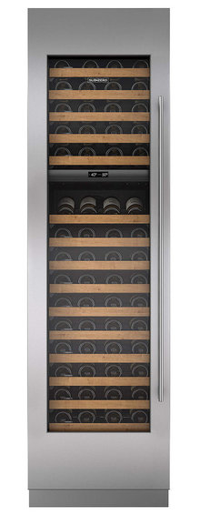 Поднимите бокал за правильное хранение вина. И, не откладывая в долгий ящик, произнесите второй тост за несказанное визуальное довольствие от экспозиции вашего вина на элегантных полках с фасадом из вишневого дерева. Винные шкафы Sub—Zero — это не просто холодильники для напитка богов. Это гарантированная защита вина от его четырех главных врагов: температуры, влажности, света и вибраций. Вы получите две независимые герметичные зоны хранения с цифровым контролем необходимой температуры и влажности, с УФ-защитой, тихо работающим компрессором и плавно выезжающими полками, предотвращающими вибрацию и взбалтывание, и… спокойный отдых, который необходим вину и его ценителям. Как вино сочетается с различными блюдами, так и винный шкаф Sub—Zero с продуманным дизайном будет только подчеркивать ваш интерьер. Винные шкафы доступны в нескольких размерах. Винный шкаф ICBIW-24 нового поколения техники Sub—Zero шириной 610 мм вмещает 102 бутылки. Установка возможна в любом интерьере в любом помещении дома. У всех моделей скрыты такие элементы как вентиляционная решетка и петли, благодаря чему винный шкаф становится частью единого мебельного ансамбля. Помимо классических стальных фасадов с цилиндрической ручкой или ручкой Pro, возможна установка с мебельными фасадами.