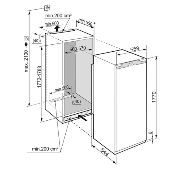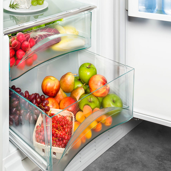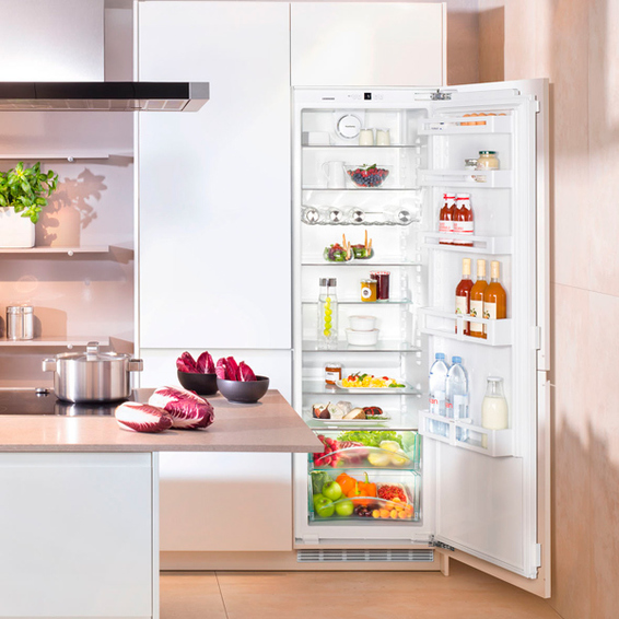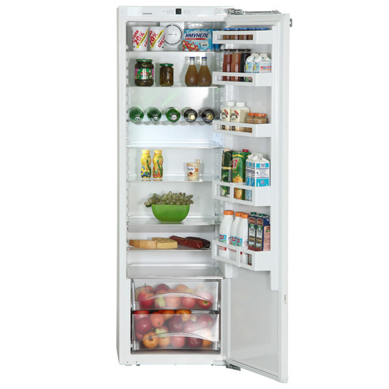 Встраиваемый холодильник Liebherr IK 3520-20 может полностью интегрироваться в кухонный интерьер благодаря применению креплений для навешивания декоративных панелей и особой конструкции системы отвода тепла. Он снабжён современным компрессором с малым энергопотреблением (класс А++) и низким уровнем шума.
