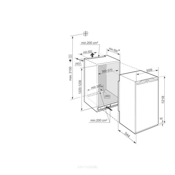 Размеры: высота: 121,8 см ширина: 55,9 см глубина: 54,4 см Общий объем/ Полезный объем: Холодильника (л): 226/196 Холодильной камеры (вкл