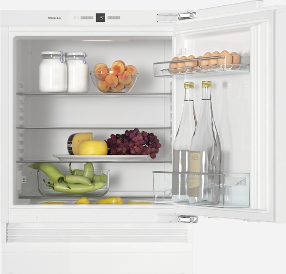 Встраиваемый под столешницу холодильник Полезный объём 136 л Дверной упор правый, переставляемый Электронное управление PicTronic LED-подсветка Покрытие ComfortClean Режим «Суперохлаждение» Высота ниши 820-870 мм Уровень шума 38 дБ