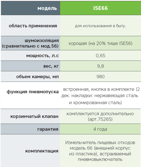 Это лучшая модель нашего стандартного класса моделей, сочетающая высокоэффективную систему непрерывной подачи с высокой производительностью, что позволяет перерабатывать большие количества отходов, включая небольшие кости. Встраиваемая кнопка пневматического управления Air Switch. Работает на 20% тише, чем модель 56. Дробильная камера из нержавеющей стали (объем 980мл) и высококачественные кулачки (также из нержавеющей стали). Подходит для любых кухонь
