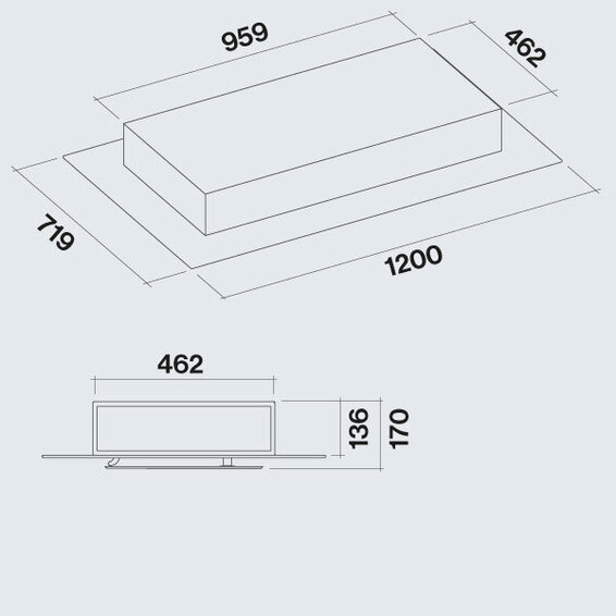 Ширина корпуса вытяжки (мм): 1200