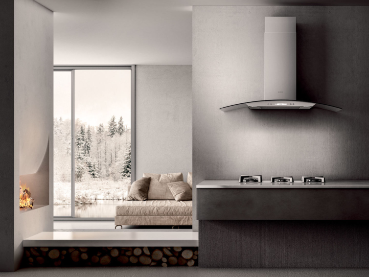 Купол из металла в сочетании со стеклом крепится к стене и имеет минималистичный дизайн, что делает модель универсальной для встраивания в современный кухонный интерьер