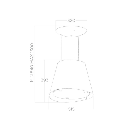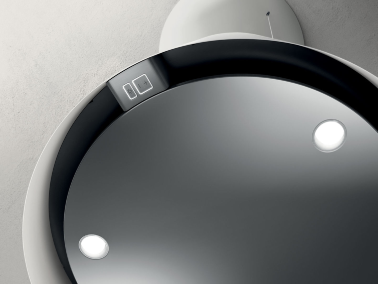 Комфорт и безопасность: Подвесная вытяжка EASY BL/F/50 имеет диаметр 50 см и крепится к потолку тонкими металлическими тросами.