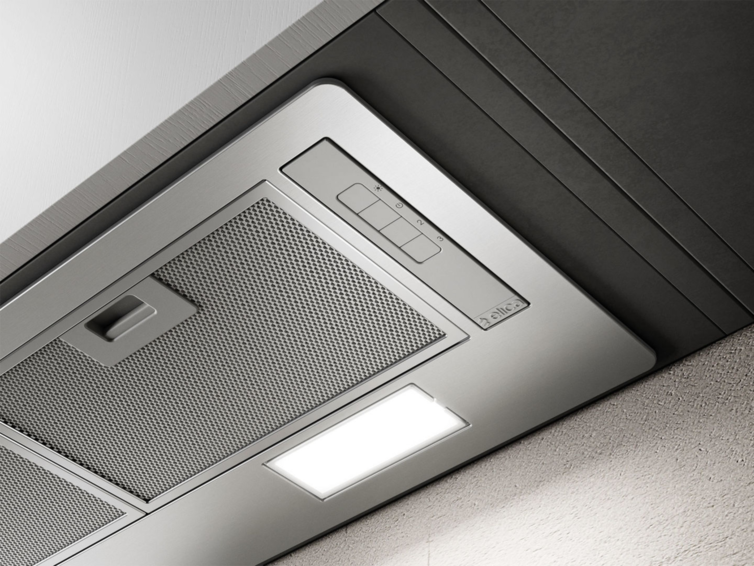 Комфорт и безопасность: Встраиваемая в подвесной шкаф вытяжка имеет плавные линии и минималистичный дизайн, что делает модель универсальной для встраивания в любую кухню.