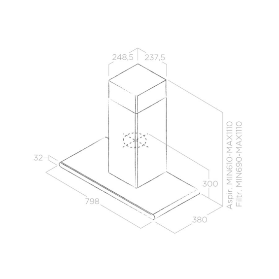 Функционал. Электронное управление с сенсорными переключателями обеспечивает легкую работу с прибором. Вытяжка оснащена тремя ступенями мощности и интенсивным режимом. Максимальная производительность составляет 1000 куб. м в час, что является хорошим показателем даже для просторных кухонных помещений. Плюсы. Алюминиевый жироулавливающий фильтр пригоден для мытья в посудомоечной машине. Уровень шума на первой ступени мощности составляет всего 45 дБ. Четыре галогенные лампы обеспечивают яркое дополнительное освещение рабочей поверхности.