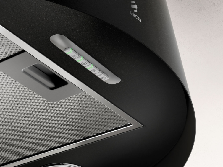 Комфорт и безопасность: Подвесная вытяжка JUNO URBAN крепится к потолку на тонкие металлические тросы. Благодаря лаконичной форме модель гармонично сочетается с кухней.