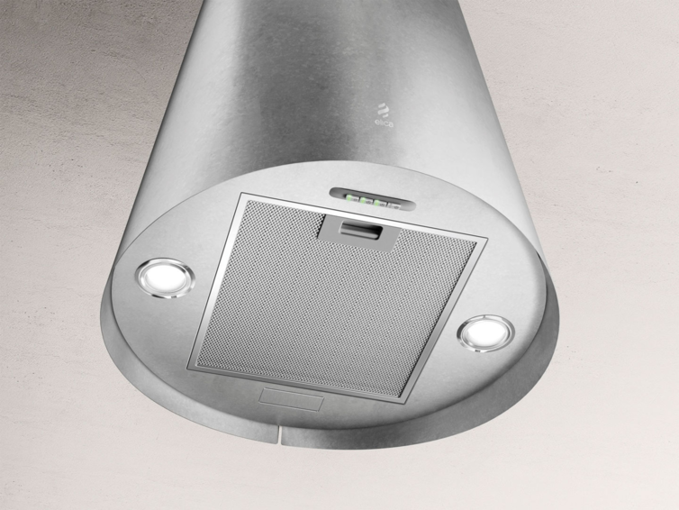 Подвесная вытяжка JUNO URBAN ZINC/F/50 крепится к потолку на тонкие металлические тросы