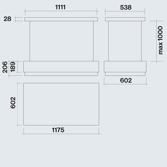 Ширина корпуса вытяжки (мм): 1175