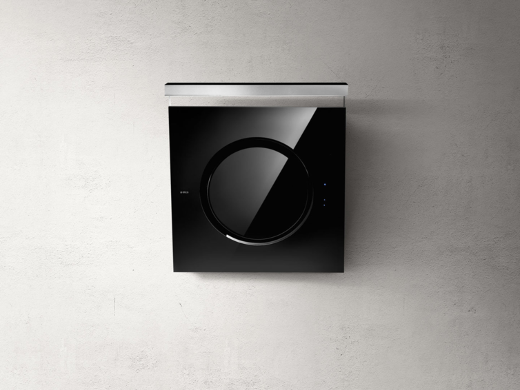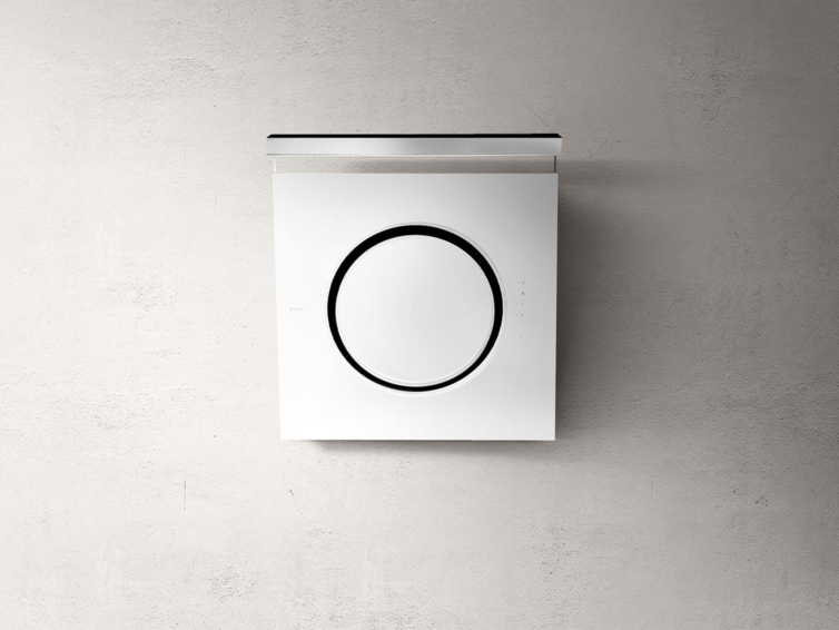 Комфорт и безопасность: Легенда дома Elica — настенная вытяжка OM AIR BL/F/75 представляет собой идеальную геометрию: круг внутри квадрата.