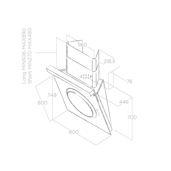 Фасад модели выполнен из черного стекла и гармонично дополнит кухонное помещение любой стилистической направленности. Наклонная конструкция экономит место в пространстве и не создает помех при готовке. Функционал. Изысканный дизайн дополнен разнообразным технологическим содержанием. Модель работает в режимах отвода и рециркуляции (монтажный комплект для работы в режиме отвода приобретается отдельно). Технология BACK ASPIRATION позволяет отвести дымоход вбок. Сенсорные переключатели помогают с легкостью управлять тремя стандартными и одним интенсивным режимами вытяжки, а также регулировать освещение. Светодиодная STRIP LED лента — экономичный и максимально долговечный источник света над варочной поверхностью.