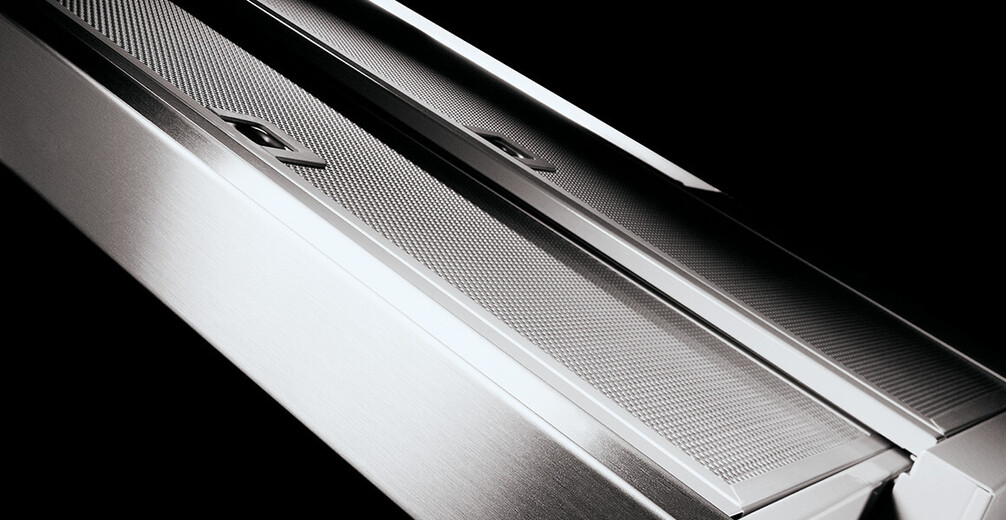 OMNIA Значение стиля. Частично встраиваемая в шкаф вытяжка с широкой областью всасывания, обеспечиваемой фильтрами размещеными в выдвижном козырьке. Специальные направляющие обеспечивают плавное открытие и закрытие козырька и держат его на одном уровне с корпусом вытяжки. OMNIA SRM LG/X A90 OMNIA SRM LG/X A60