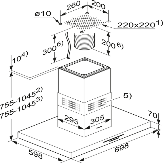 Ширина корпуса вытяжки (мм): 898