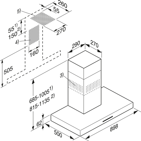 Дизайн вне времени – вытяжка из нержавеющей стали шириной 898mm Высокая мощность – 630 m3/h интенсивный режим