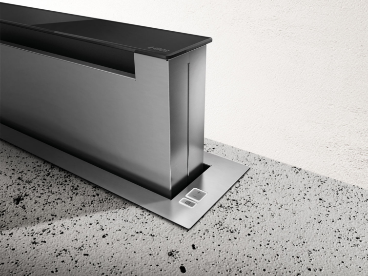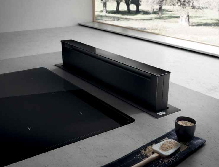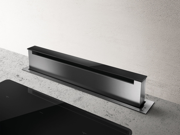 Встраиваемая вытяжка ELICA PANDORA GME BL/A/90 интегрируется в столешницу и поглощает загрязненный воздух и запахи от приготовления почти мгновенно